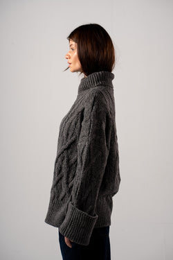 Grey Chunky Mock Neck Cable Pullover
