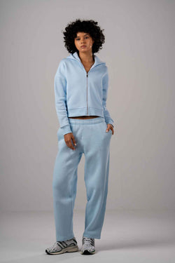 Light Blue Cropped Zip-Up Hoodie